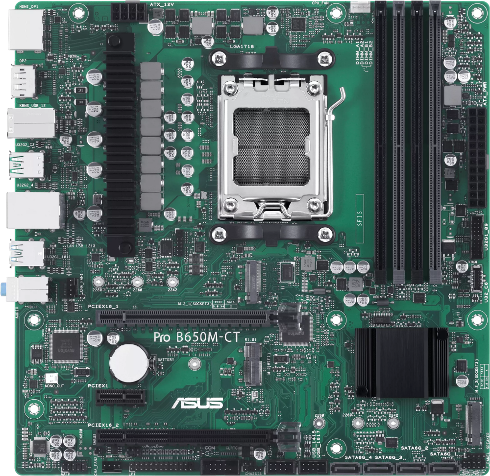 Материнская плата ASUS PRO B650M-CT-CSM, Socket AM5, B650, 4*DDR5, DP+HDMI, 4xSATA3, Audio, Gb LAN, USB 3.2, USB 2.0, mATX; 90MB1EC0-M0EAYC