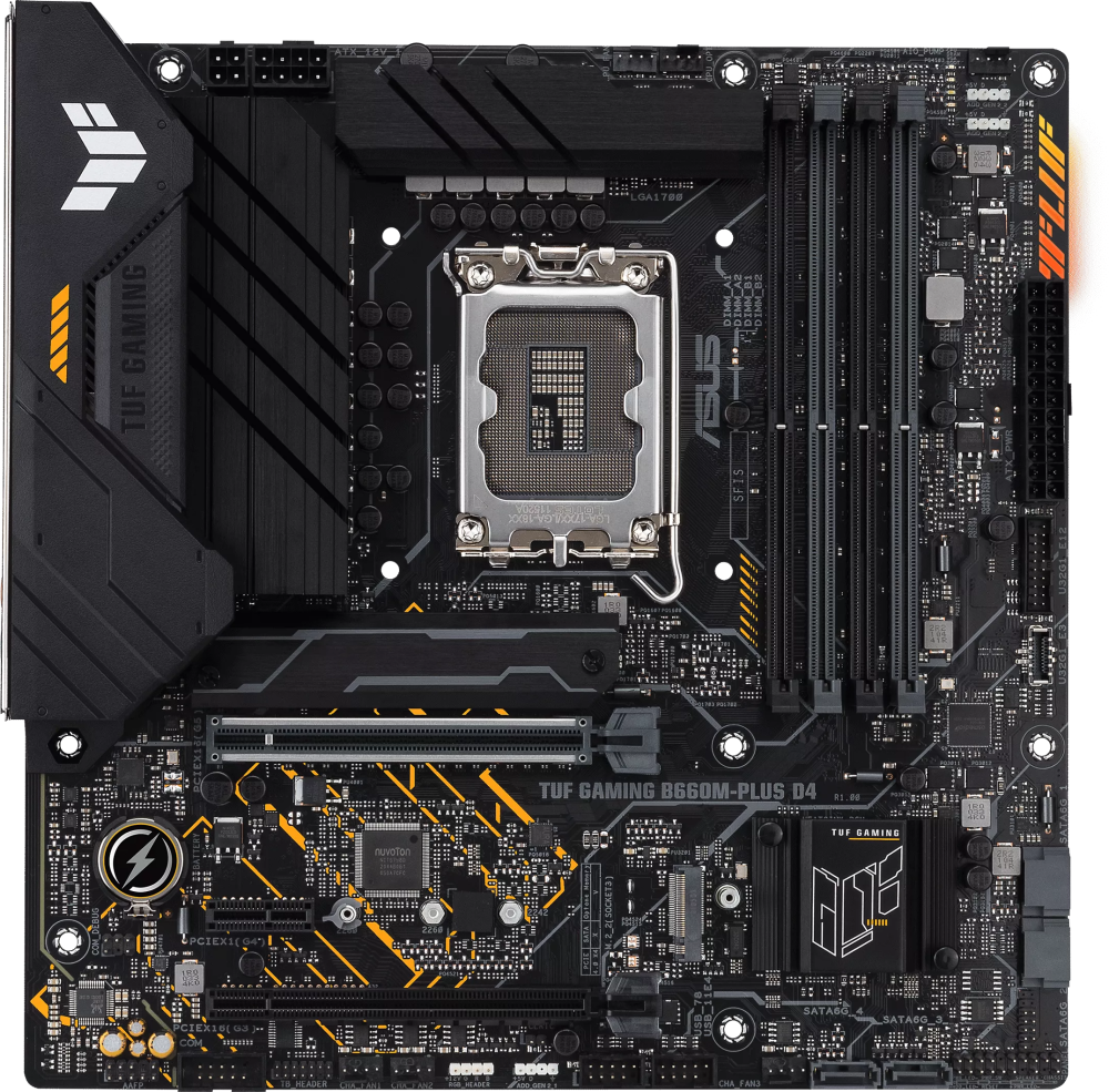 Материнская плата Asus TUF GAMING B660M-PLUS D4 Soc-1700 Intel B660 4xDDR4 mATX AC`97 8ch(7.1) 2.5Gg RAID+HDMI+DP