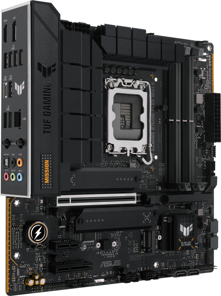 Материнская плата ASUS TUF GAMING B760M-PLUS WIFI II, LGA 1700, Intel B760, 4xDDR5, 4xSATA, 3xM.2, 1xPCI-E 5.0 x16, 1xPCI-E x4, 1xUSB-A 3.2 Gen 2, 2xUSB-A 3.2 Gen 1, 4xUSB 2.0, 1xUSB-C 3.2 Gen 2x2, 1x2.5Gb LAN, 5x3.5 мм, 7.1, Wi-Fi 6E, Bluetooth 5.3, Micr
