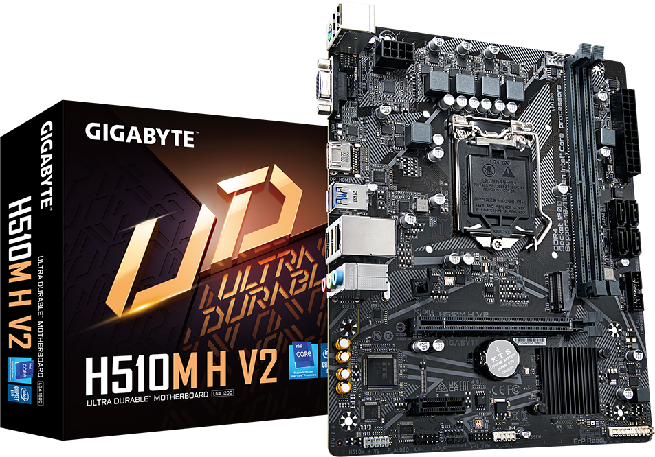 Материнская плата GIGABYTE H510M H V2 станет надежным решением для сборки офисной рабочей станции. Она выполнена в форм-факторе Micro-ATX и содержит в своей основе чипсет Intel H470 с процессорным разъемом LGA 1200. В оснащение платы входят 2 слота под размещение до 64 ГБ оперативной памяти, 4 разъема SATAIII и 1 разъем M.2 под установку накопителей, по одному слоту расширения PCI-E x16 и PCI-E x1 для графических адаптеров.