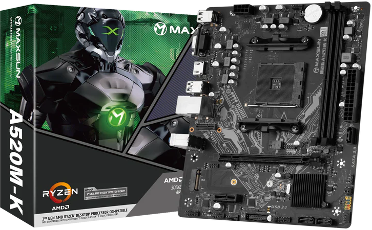 Материнская плата Maxsun MS-Challenger A520M-K WIFI B550, AM4, 2*DDR4, 1*PCIEx16, 1*PCIEx1, 2*M.2, 4*USB3.2Gen1, 6*USB2.0, 3*SATA3.0, 1G, VGA, HDMI, M-ATX, RTL