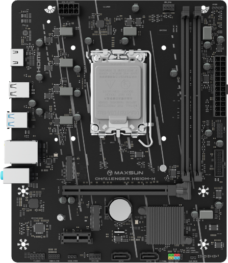 Материнская плата Maxsun MS-Challenger H610M-H V1 H610, LGA1700, 2*DDR4, 1*PCIEx16, 1*PCIEx1, 1*M.2, 4*USB3.2Gen1, 6*USB2.0, 2*SATA3.0, 1G, HDMI, M-ATX, RTL