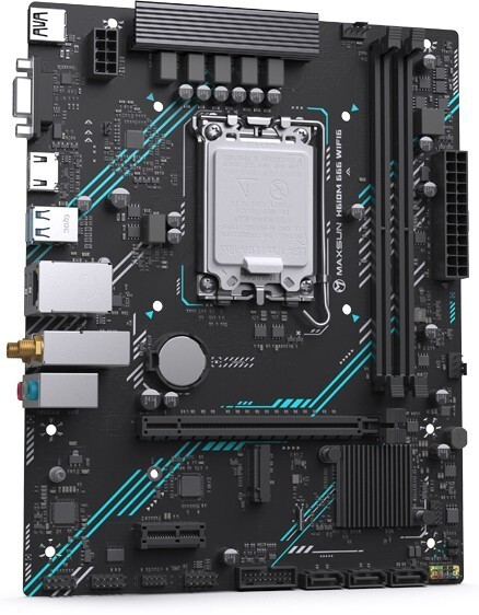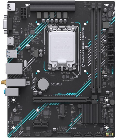 Материнская плата Maxsun MS-H610M 666 WIFI6 ARGB (Socket 1700, mATX, 2*DDR4, VGA+HDMI, 4*SATA3, 1*M.2, 1*PCIEx16/1*PCIEx1, 2*USB2.0, 2*USB 3.2 Gen1, LAN 1*1G, Bluetooth, Wi-Fi 802.11ax, RTL)