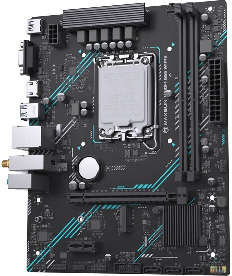 Материнская плата Maxsun MS-H610M 666 WIFI6 (Socket 1700, mATX, 2*DDR4, VGA+HDMI, 4*SATA3, 1*M.2, 1*PCIEx16/1*PCIEx1, 3*USB2.0, 2*USB 3.2 Gen1, LAN 1*1G, Bluetooth, Wi-Fi 802.11ax, RTL)