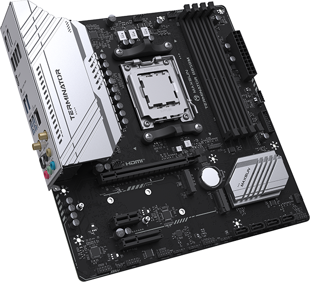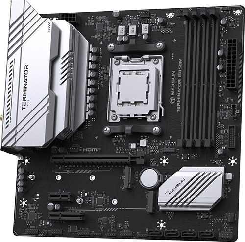 Материнская плата MAXSUN MS-Terminator B850M WIFI, AM5, B850, 4*DDR5, 4*SATA 3.0, 2*M.2, USB 3.2, USB 2.0, Type-C, 1*PCIE 16, 1*PCIE 4, 1*PCIE 1, HDMI+DP, mATX