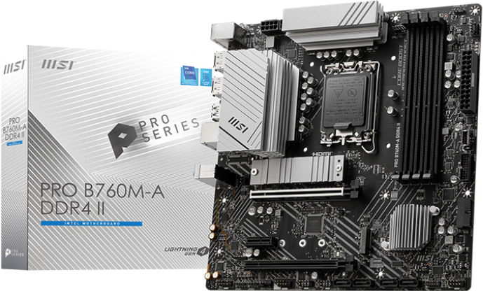 Материнская плата MSI PRO B760M-A DDR4 II Soc-1700 Intel B760 4xDDR4 mATX AC`97 8ch(7.1) 2.5Gg+HDMI+DP