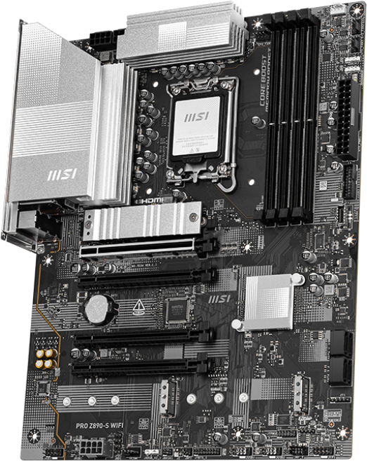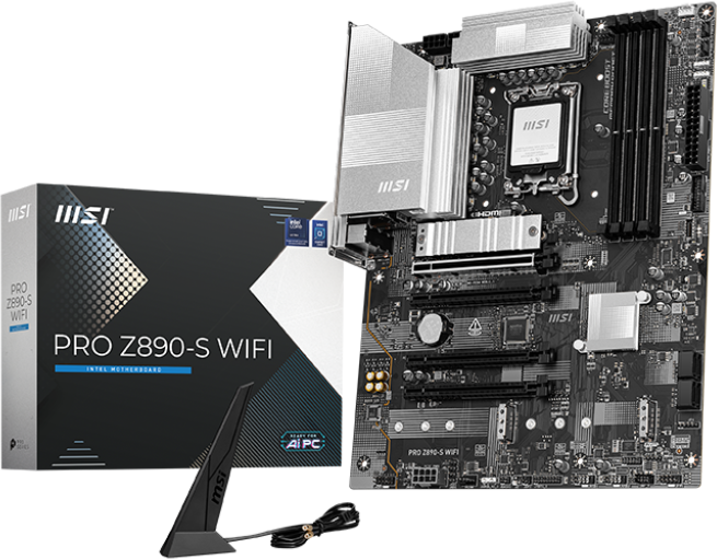 Материнская плата MSI PRO Z890-S WIFI PZ Z890, LGA1851, 4*DDR5, 4*PCIEx16, 3*M.2, 2*TypeC, 6*USB3.2Gen1, 4*USB2.0, 4*SATA3.0, 2.5G, Type-C(DP), DP, HDMI, ATX, RTL