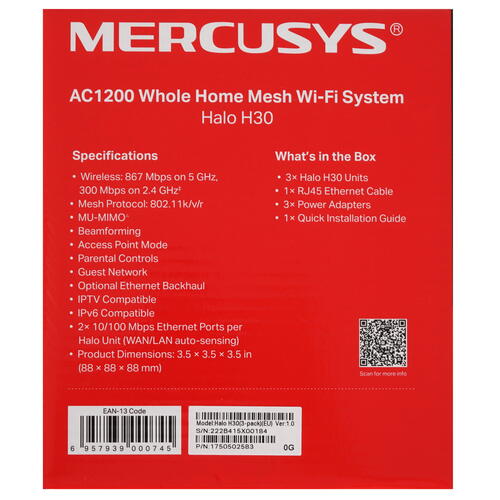 Описание MESH-комплект Mercusys Halo H30 (3-pack)