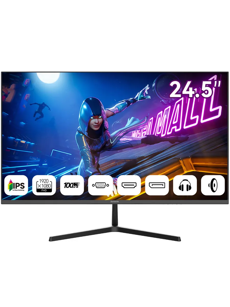 Монитор 24.5" AIWA MD2512 Black (IPS, 1920x1080, D-Sub+HDMI+DP, 4 ms, 178°/178°, 300 cd/m, 1000:1, 100Hz, Spk)