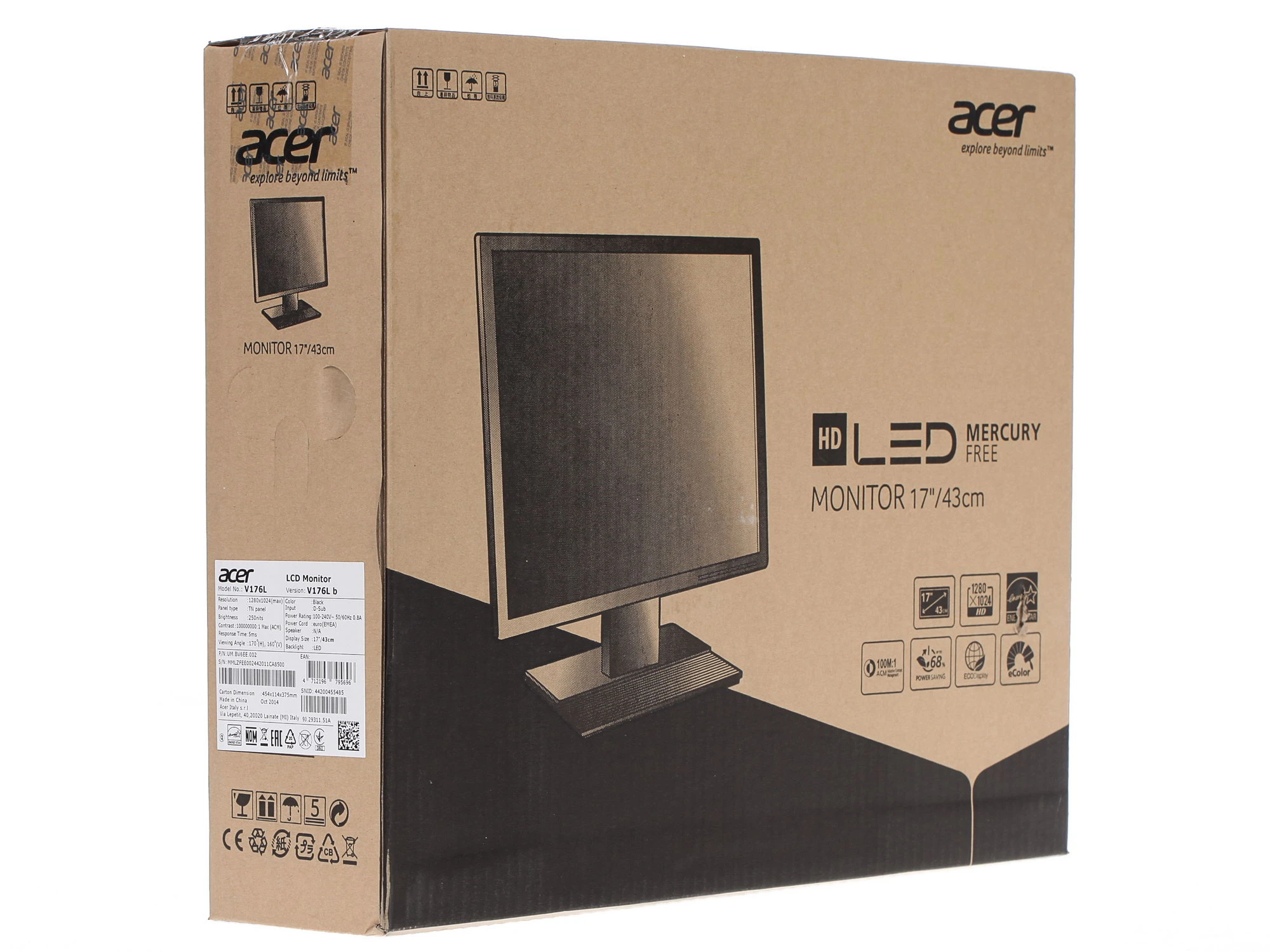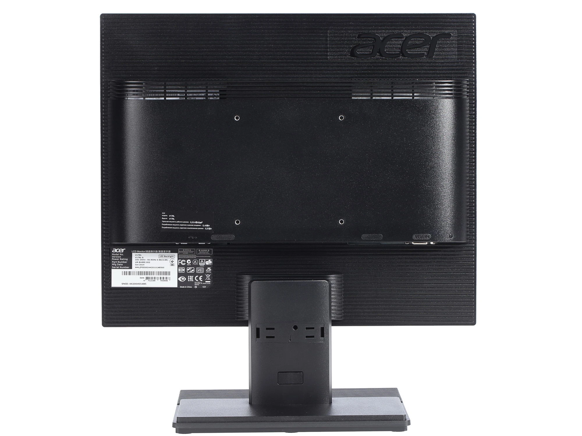 Описание Монитор ACER V176Lb 17'',, Black Matt, 5:4, TN, 1280x1024, 5ms, 250cd, 75Hz, VGA, Vesa:100x100