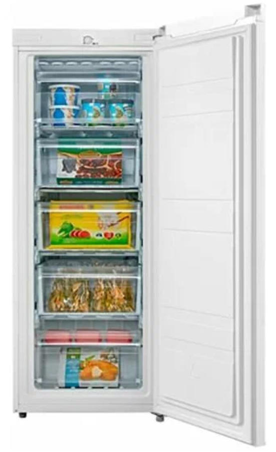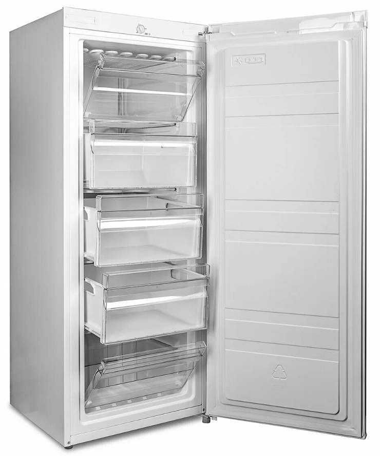 Морозильный шкаф Centek CT-1781 объемом 157 л состоит из 5 ящиков. Температура внутри камеры может опускаться до -20°. Размораживается прибор вручную, помыть его не составит труда. Есть возможность для перевешивания двери.