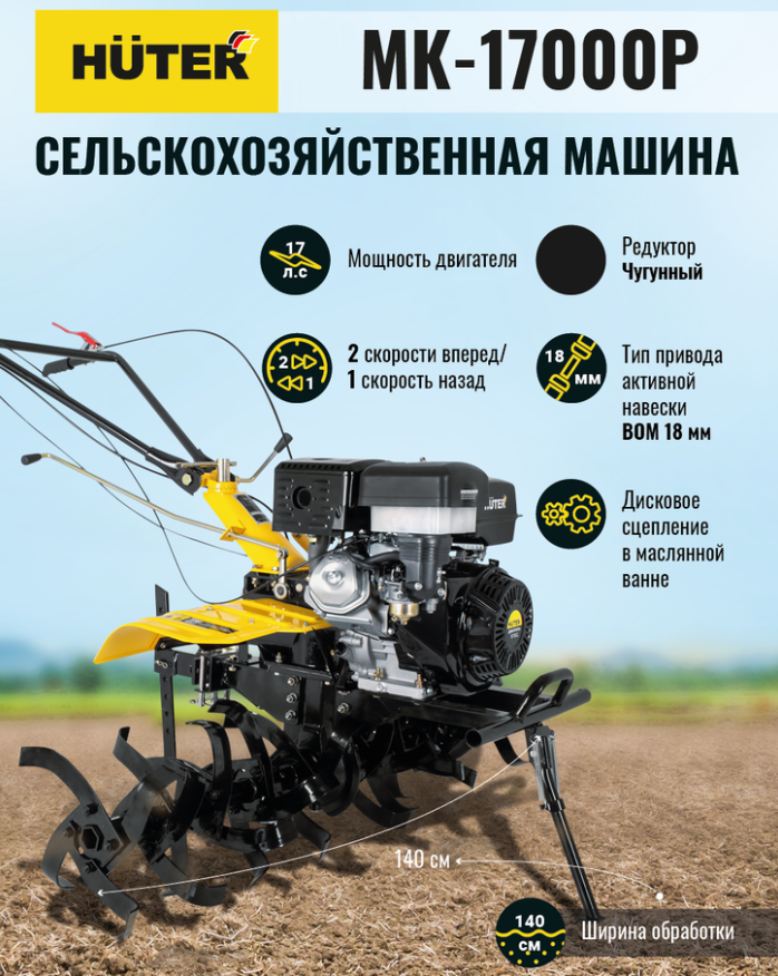 Описание Мотоблок Huter МК-17000M (70/5/31) бензиновый 17л.с.