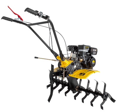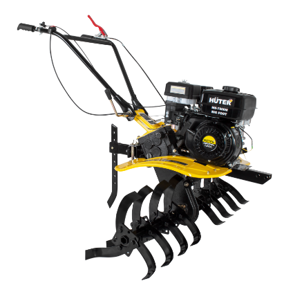 Устройство - Двигатель. На сельскохозяйственных машинах HUTER применяются бензиновые двигатели внутреннего сгорания. Двигатели культиваторов снабжаются автоматическими регуляторами частоты вращения, упрощающими работу оператора. Диапазон номинальной мощности линейки наших культиваторов позволяет выбрать подходящий для любых видов работ. - Сцепление и редуктор обеспечивают передачу вращающего момента от двигателя на рабочий вал. - Система агрегатирования предназначена для сопряжения машины с навесным оборудованием, которое устанавливается на рабочую ось или раму. - Система управления. Так как вовремя земляных работ оператор шагает за сельскохозяйственной машиной, все органы управления должны приводиться в действие только руками оператора.