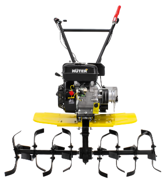 Устройство - Двигатель. На сельскохозяйственных машинах HUTER применяются бензиновые двигатели внутреннего сгорания. Двигатели культиваторов снабжаются автоматическими регуляторами частоты вращения, упрощающими работу оператора. Диапазон номинальной мощности линейки наших культиваторов позволяет выбрать подходящий для любых видов работ. - Сцепление и редуктор обеспечивают передачу вращающего момента от двигателя на рабочий вал. - Система агрегатирования предназначена для сопряжения машины с навесным оборудованием, которое устанавливается на рабочую ось или раму. - Система управления. Так как вовремя земляных работ оператор шагает за сельскохозяйственной машиной, все органы управления должны приводиться в действие только руками оператора.