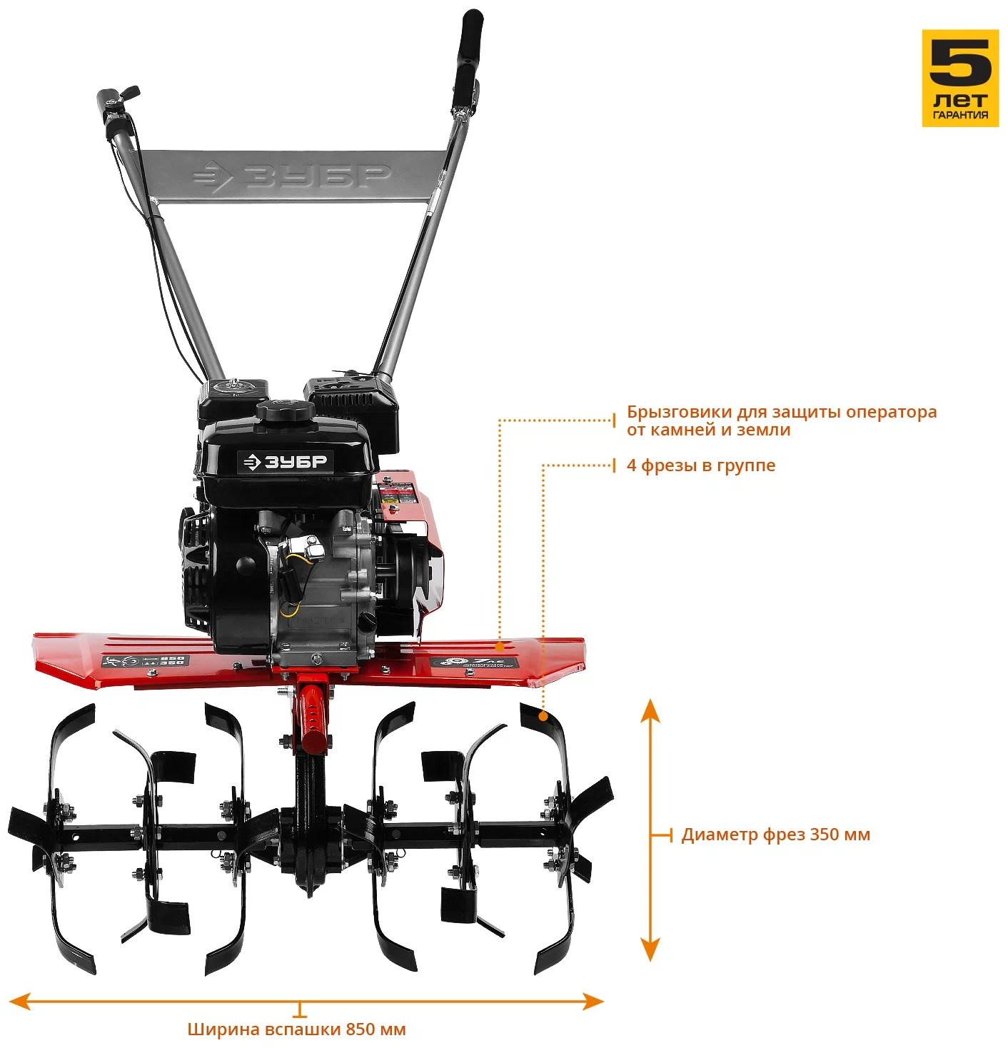 Объема топливного бака 3.6 л будет достаточно, чтобы при помощи Зубр МТБ-400 обработать большую площадь почвы. В основе мотоблока лежит четырехтактный двигатель. Преимущество модели в поддержке 3 скоростей, позволяющих мотоблоку двигаться вперед, и 1 скорости, обеспечивающей обратное движение, что позволяет обрабатывать любые виды почв. Получение отличного результата гарантируют закаленные фрезы, произведенные из конструктивной стали, которые самозатачиваются.