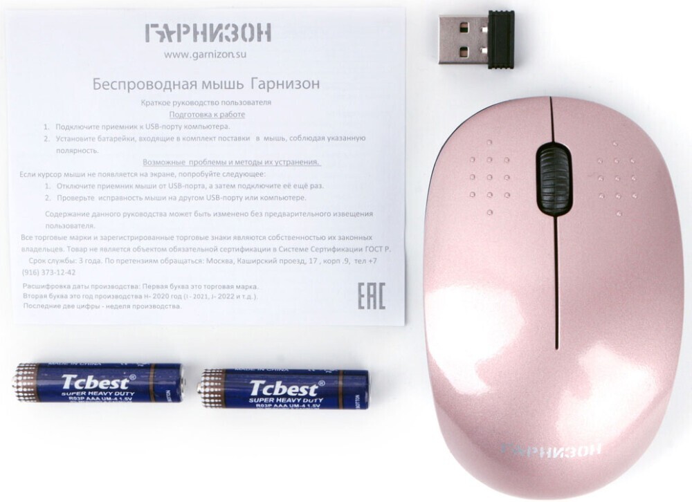 Характеристики Мышь беспроводная Гарнизон GMW-440-3, розовый, 1000 DPI, 2 кн.+ колесо-кнопка