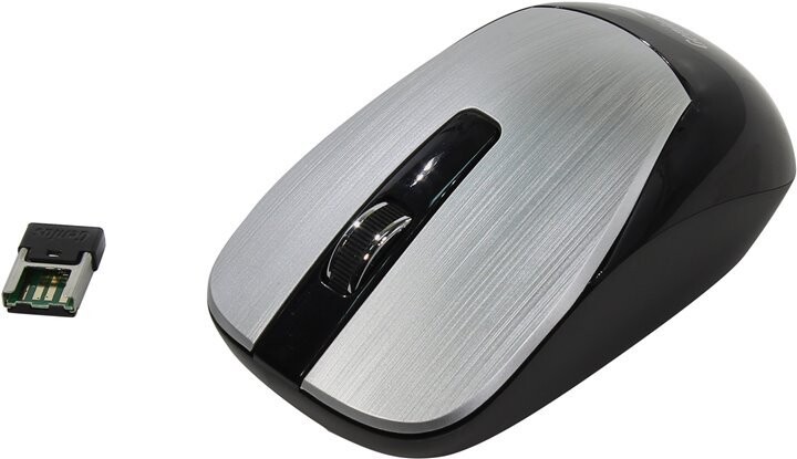 Мышь беспроводная Genius NX-7015, оптическая, мини-ресивер, сенсор Blue Eye, оптическая, разрешение 800 / 1200 /1600 dpi, SmartGenius, покрытие металлик. Цвет: серый