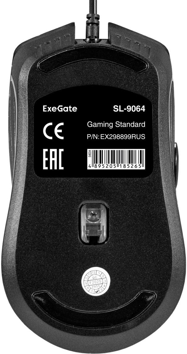 Мышь ExeGate Gaming Standard SL-9064 (USB, оптическая, 3600dpi, 6D, 6 кнопок и колесо прокрутки, длина кабеля 1,5м, черная с подсветкой, RTL)