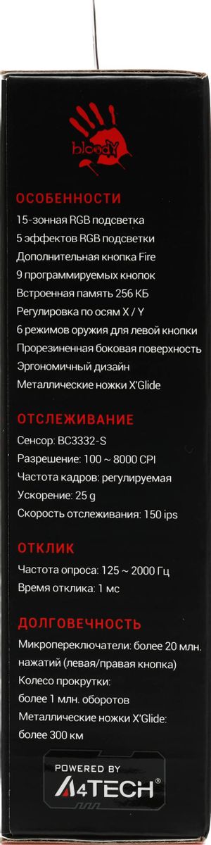 Характеристики Мышь проводная A4Tech Bloody J95s Черный