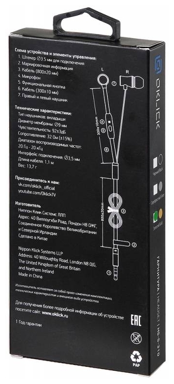Характеристики Наушники OKLICK HS-S-310, gold