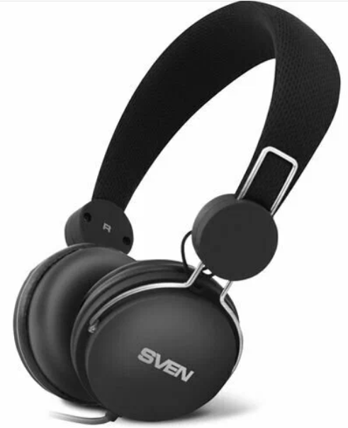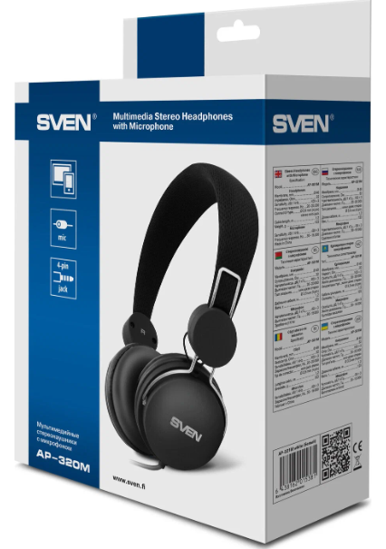 Наушники Sven AP-320M выполнены в черном цвете. Амбушюры накладные, акустическое оформление закрытого типа. Крепление на голове происходит при помощи оголовья, обеспечивается надежная фиксация.