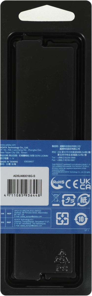 Описание Оперативная память DIMM ADATA DDR5 16Gb AD5U480016G-S