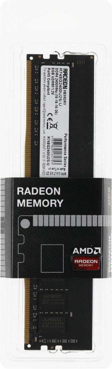Характеристики Оперативная память DIMM AMD R7 Performance DDR4 8Gb R748G2400U2S-U