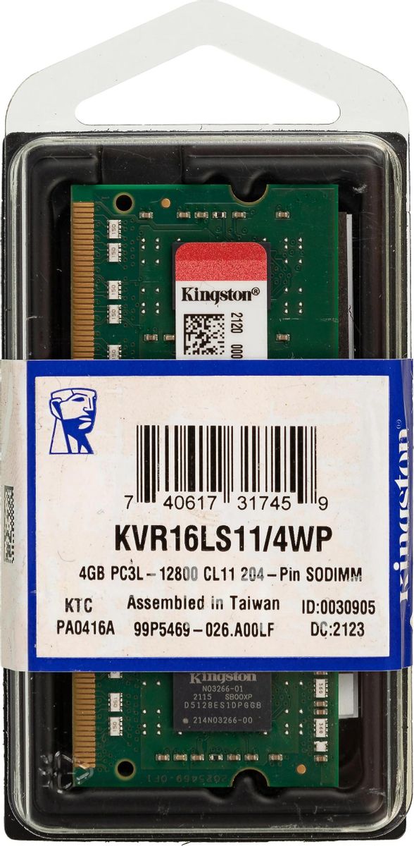 Описание Оперативная память SO-DIMM Kingston DDR3 4Gb 1600MHz KVR16LS11/4WP