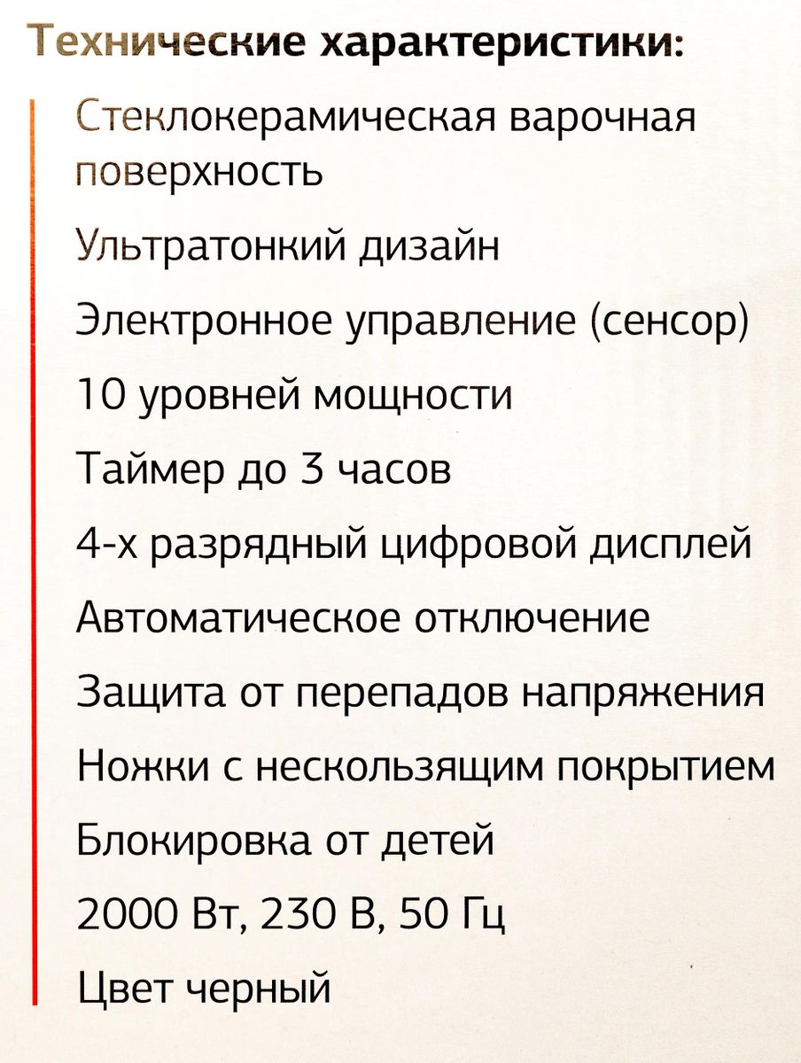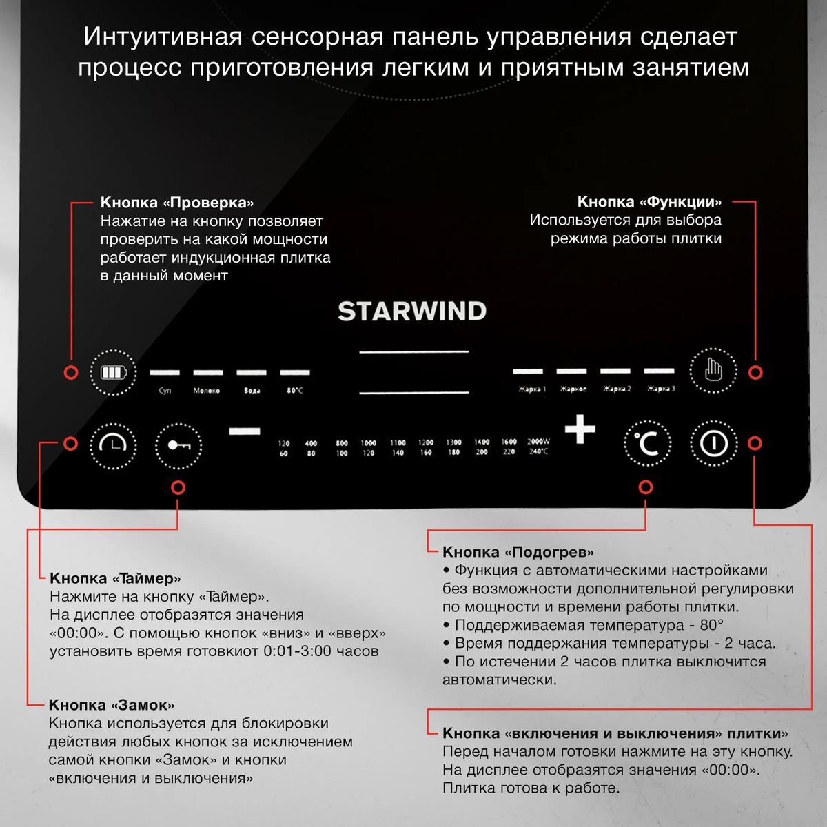 Характеристики Плита Индукционная Starwind STI-1001 черный стеклокерамика (настольная)