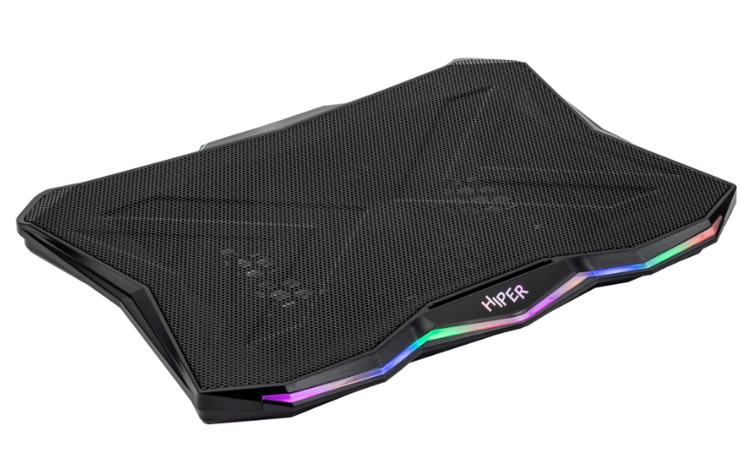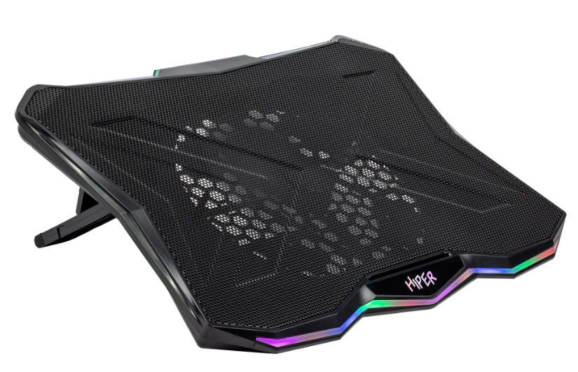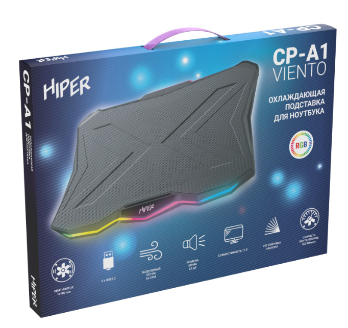 Подставка для ноутбука охлаждающая HIPER VIENTO /1 вентилятор/800 об.в мин/23 дБ/ 2xUSB2.0/ 5 углов наклона/RGB-подсветка/черный (CP-A1)