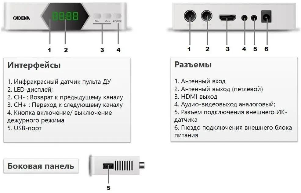 Описание Ресивер DVB-T2 Cadena CDT-2214SB белый