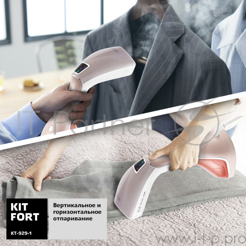 Ручной отпариватель Kitfort КТ-929-1 / Мощность: 1400–1600 Вт.Время разогрева: 45 с.бело-корич
