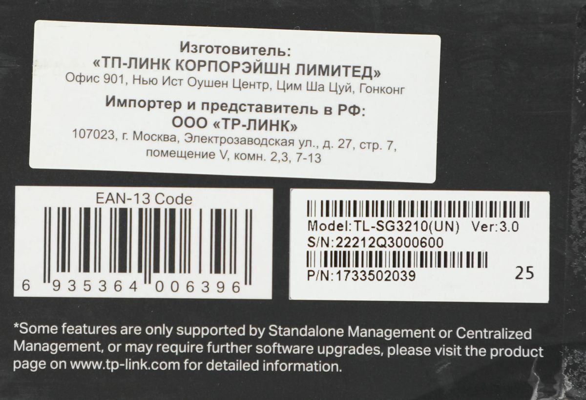 Характеристики Коммутатор (свитч) TP-Link TL-SG3210