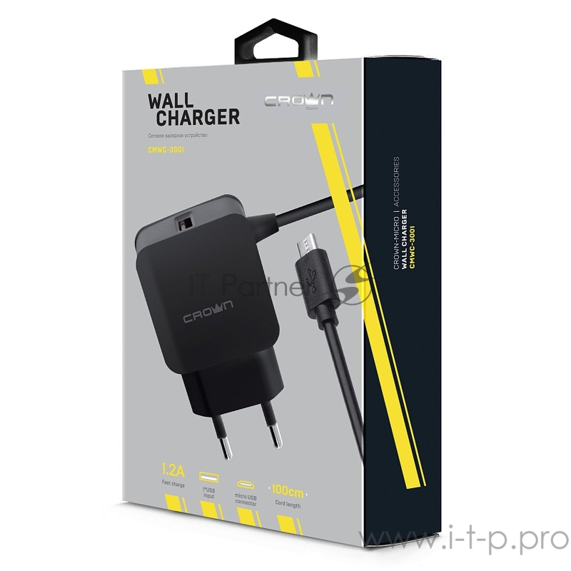 Характеристики Сетевое универсальное зарядное устройство Crown CMWC-3001 black