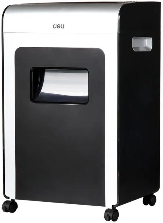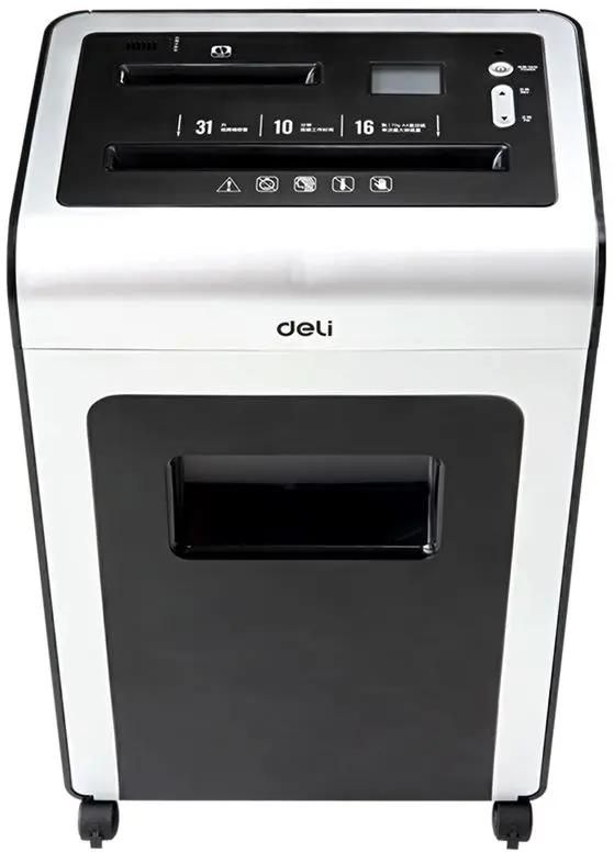 Шредер Deli E9917-EU черный/белый с автоподачей (секр.P-4)/фрагменты/16лист./31лтр./скрепки/скобы/пл.карты/CD