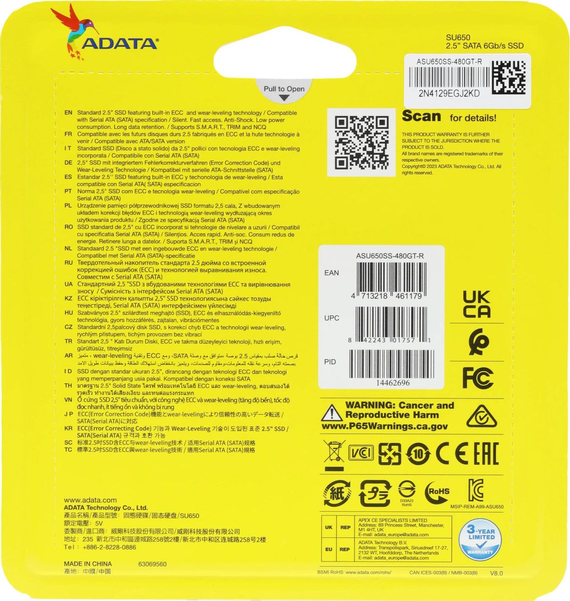 Характеристики SSD ADATA Ultimate SU650 480Gb ASU650SS-480GT-R