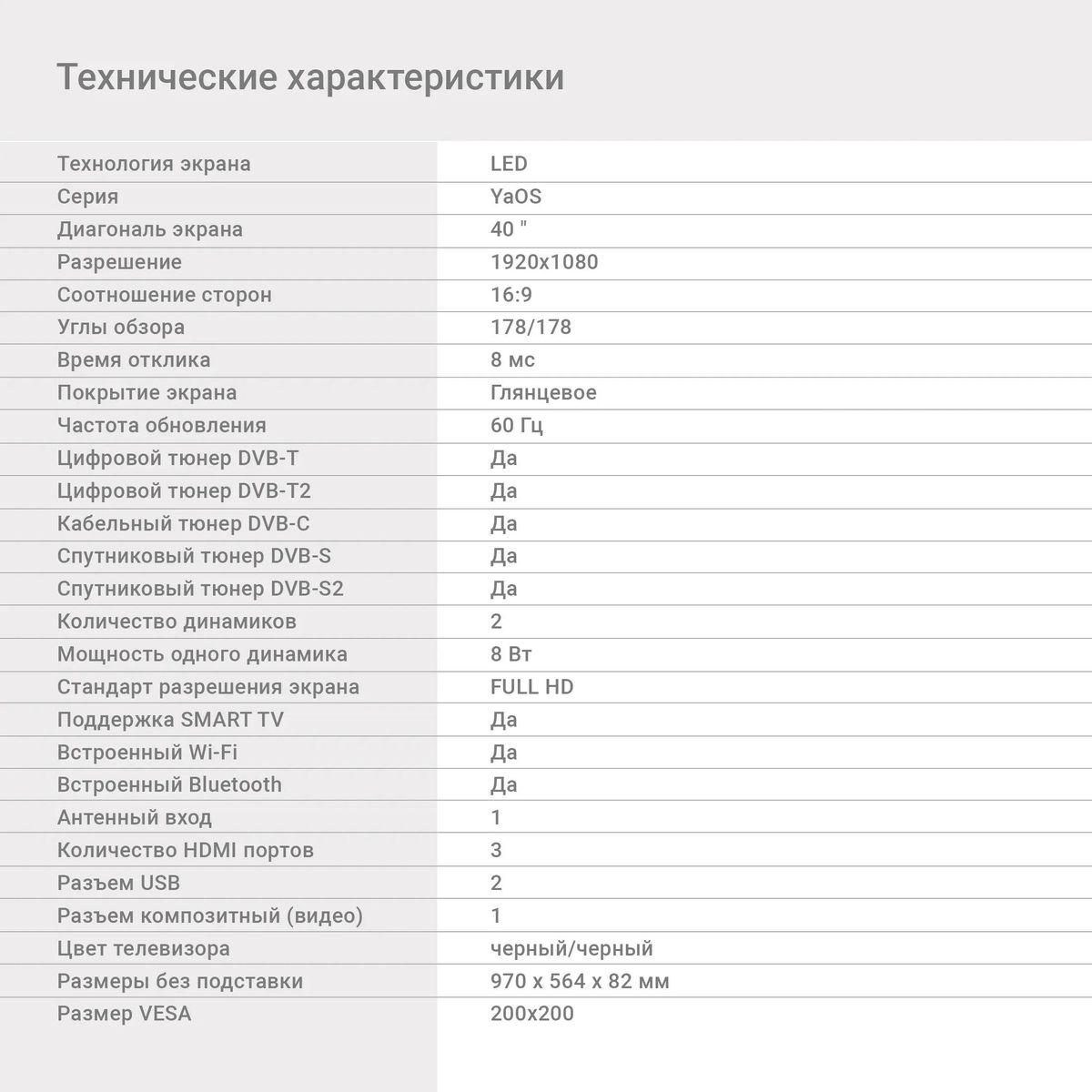 Характеристики Телевизор LED Digma 40 DM-LED40SBB31 Яндекс.ТВ черный/черный FULL HD 60Hz DVB-T DVB-T2 DVB-C DVB-S DVB-S2 USB WiFi Smart TV