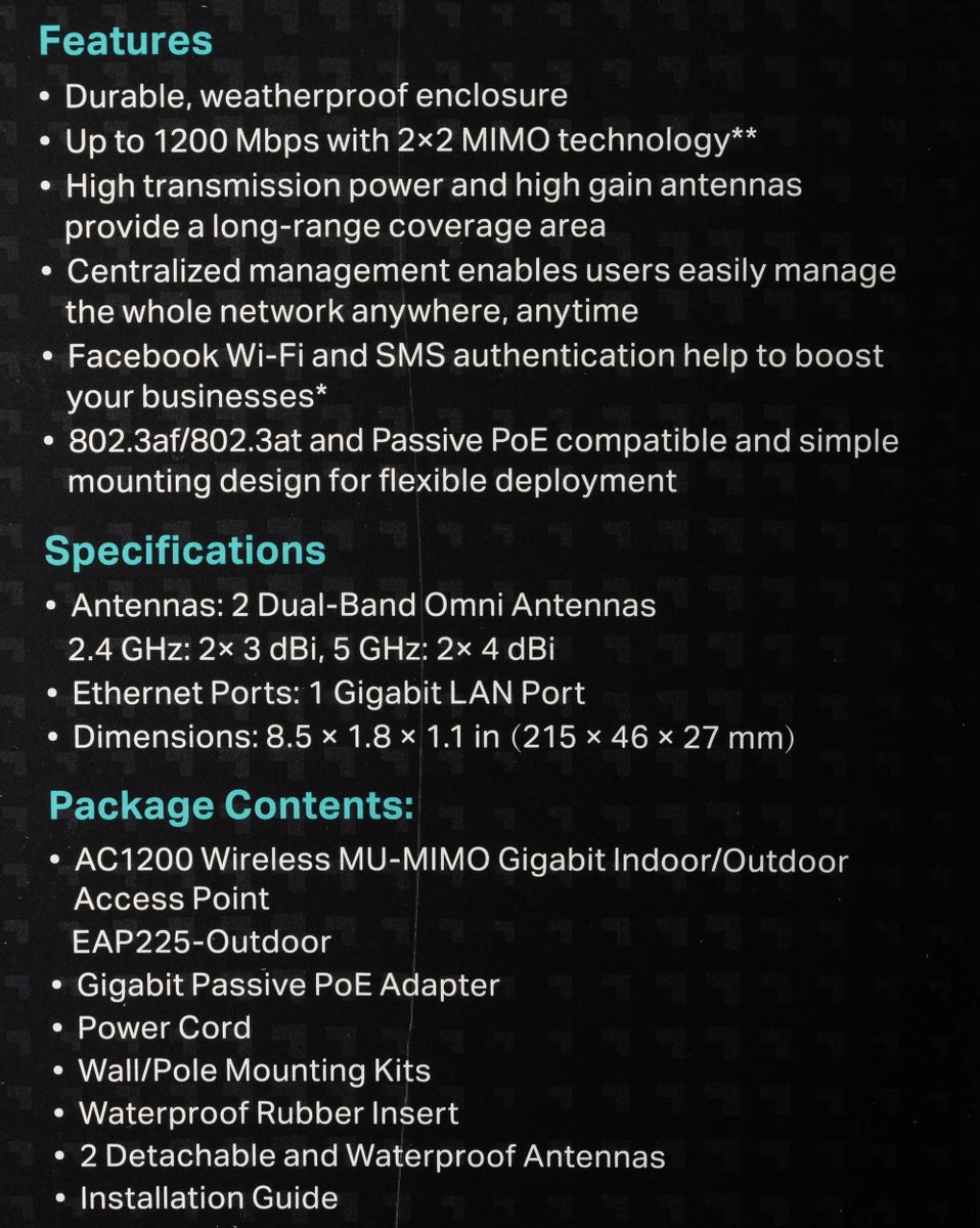 Характеристики Wi-Fi точка доступа TP-Link EAP225-Outdoor