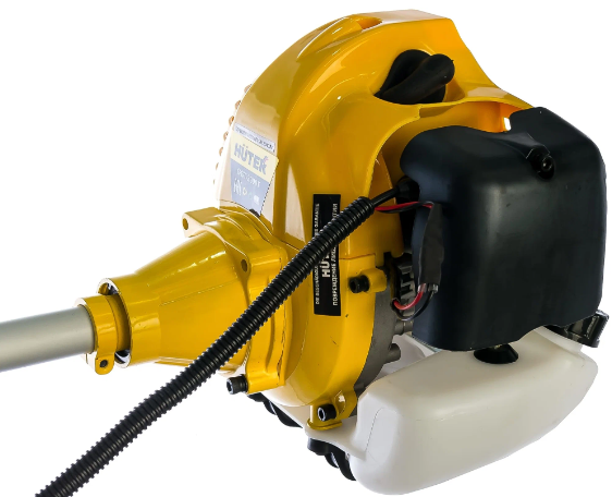 - Бензиновый триммер Huter обладает полной автономностью, можно работать где угодно без связи с источниками энергии.