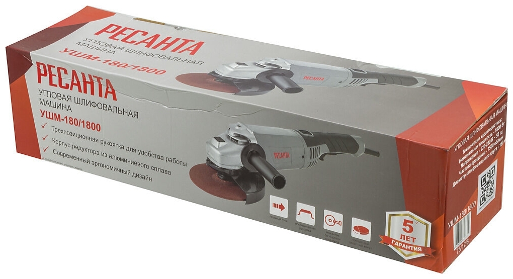 Характеристики УШМ РЕСАНТА УШМ-180/1800, 1800 Вт, 180 мм
