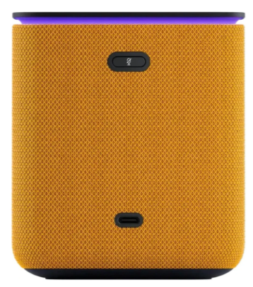 Колонка отлично впишется в любую комнату благодаря компактным размерам и стильному оформлению. Корпус сочетает мягкую ткань и прочный пластик, создавая современный и уютный облик. А яркий оранжевый цвет добавляет устройству индивидуальности, делая его не просто гаджетом, а частью интерьера.