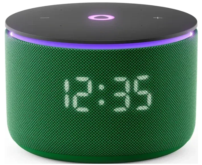 Элегантный дизайн колонки, сочетающий приятный на ощупь пластик и тканевую отделку, органично впишется в любой интерьер. А сочный зелёный цвет добавит в обстановку яркий и свежий акцент. На лицевой панели расположены стильные световые индикаторы, которые отображают текущий статус устройства. Кроме того, на корпусе есть встроенные часы с подсветкой, чтобы вы всегда могли легко узнать время.