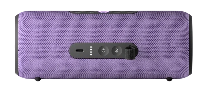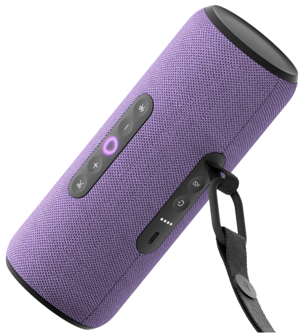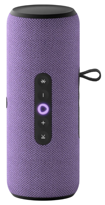 Её фиолетовый корпус, сочетающий приятный на ощупь матовый пластик и износостойкую ткань, не боится ни пыли, ни брызг. Смело берите её с собой на природу, не опасаясь внезапного дождя или песка. Внутри колонки скрыт ёмкий аккумулятор на 3300 мА·ч, которого хватит на много часов непрерывного воспроизведения вашего любимого плейлиста. А если музыка закончится слишком быстро, всего 2.5 часа на зарядке через современный USB Type-C — и она снова полна сил. В комплекте вы найдёте не только кабель, но и удобный карабин, чтобы легко закрепить колонку на рюкзаке или сумке.
