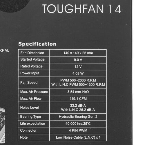 Описание Вентилятор для корпуса Thermaltake TOUGHFAN 14 Series Radiator Fan CL-F118-PL14BL-A