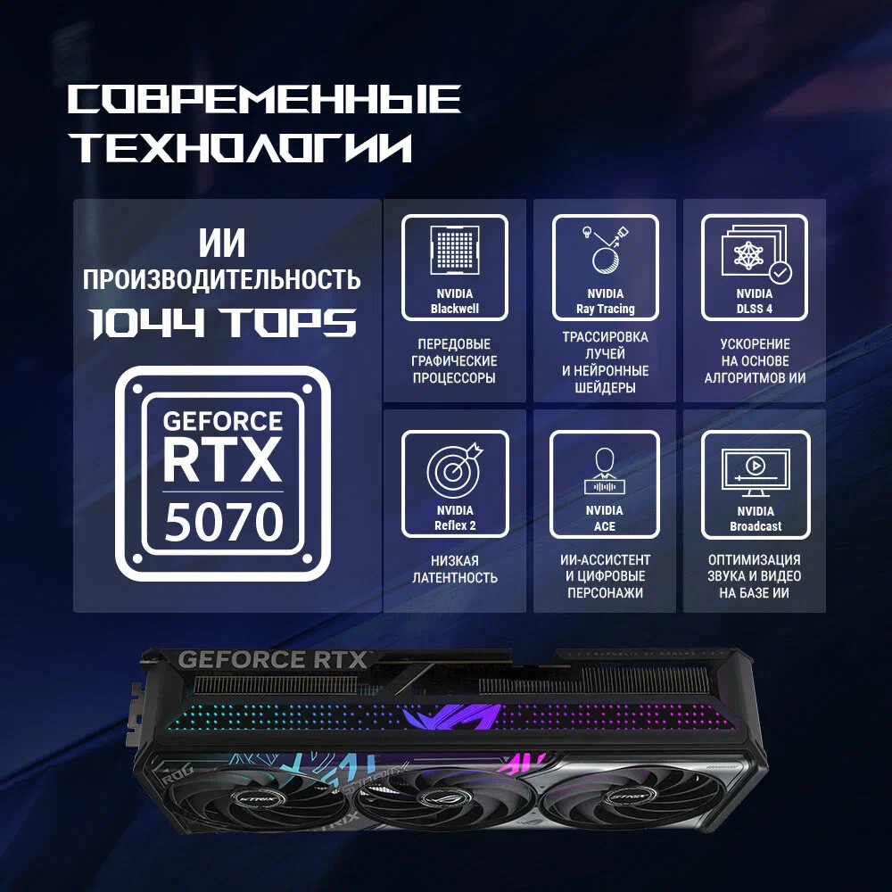 Видеокарта Asus PCI-E 5.0 ROG-STRIX-RTX5070-O12G-GAMING NVIDIA GeForce RTX 5070 12Gb 256bit GDDR7 2588/28000 HDMIx2 DPx3 HDCP Ret