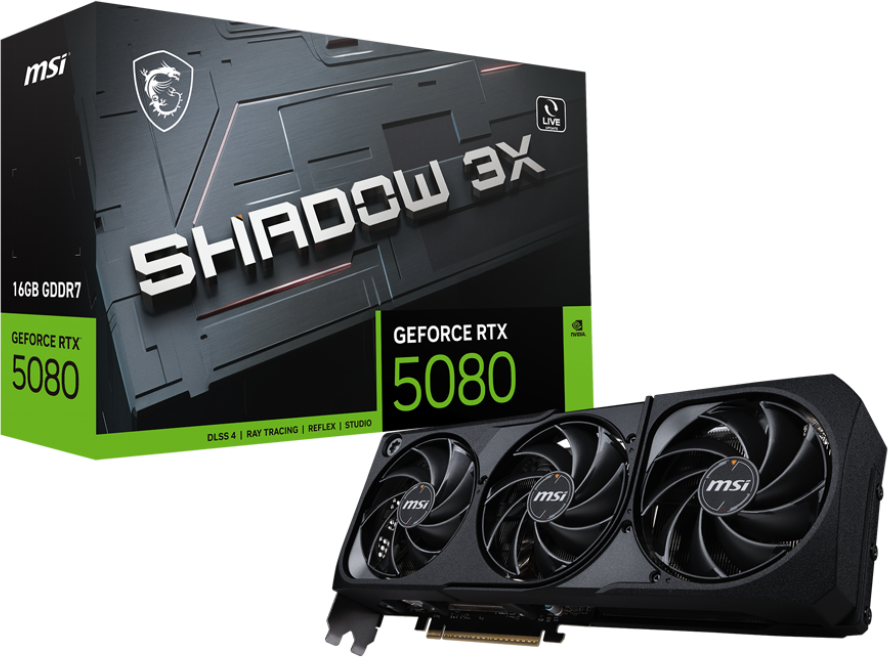 Видеокарта MSI PCI-E 5.0 RTX 5080 16G SHADOW 3X NVIDIA GeForce RTX 5080 16Gb 256bit GDDR7 2617/30000 HDMIx1 DPx3 HDCP Ret
