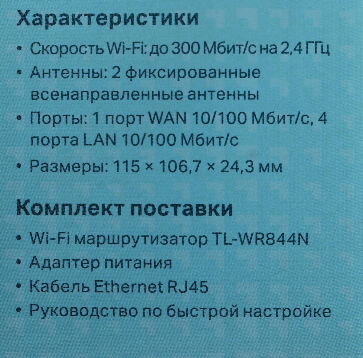 Описание Wi-Fi роутер TP-Link TL-WR844N