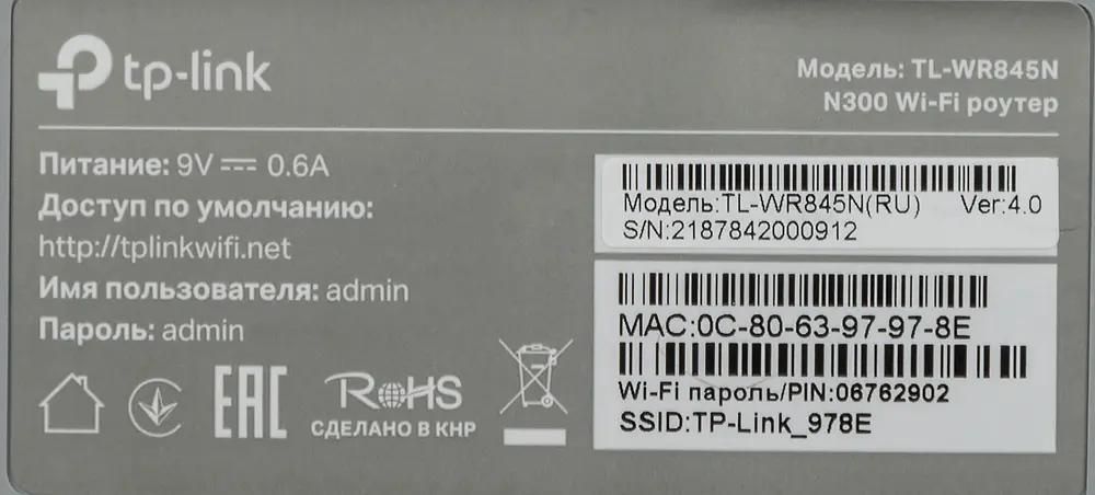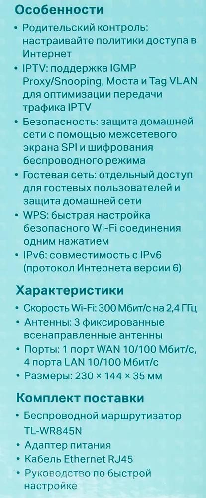 Описание Wi-Fi роутер TP-Link TL-WR845N