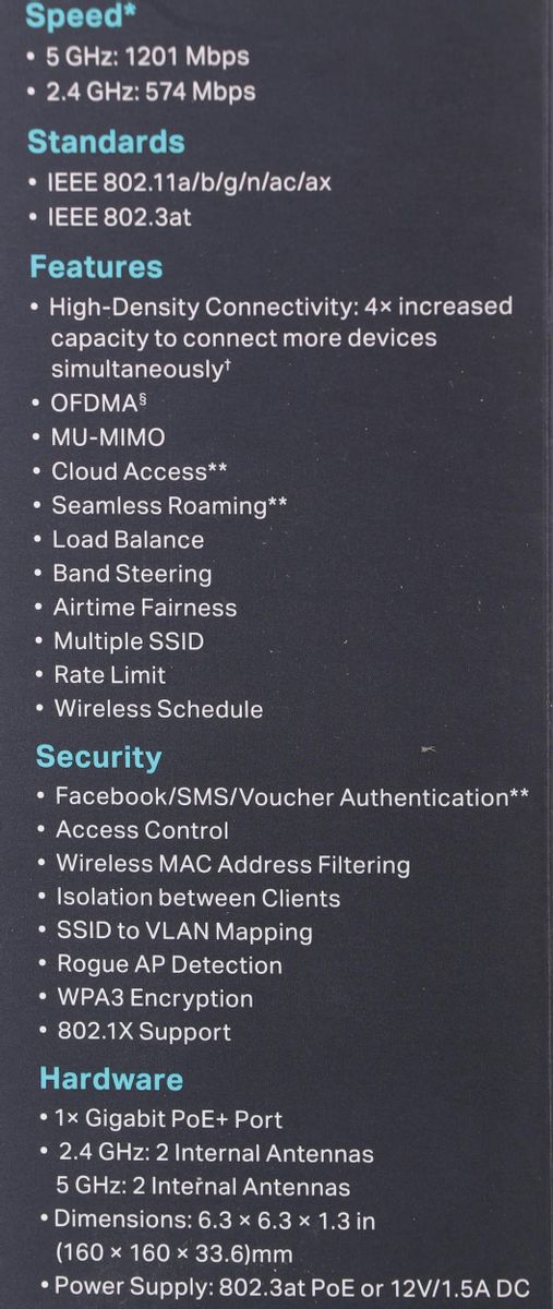 Характеристики Wi-Fi точка доступа TP-Link EAP620 HD