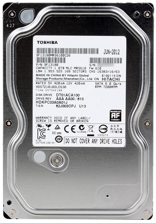 Характеристики Жесткий диск Toshiba 1Tb 7200rpm DT01ACA100 SATA-III 32Mb 3.5" OEM